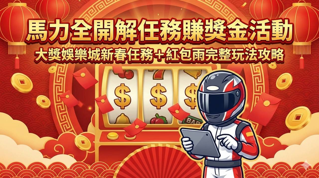 馬力全開解任務賺獎金活動|大獎娛樂城新春任務+紅包雨完整玩法攻略
